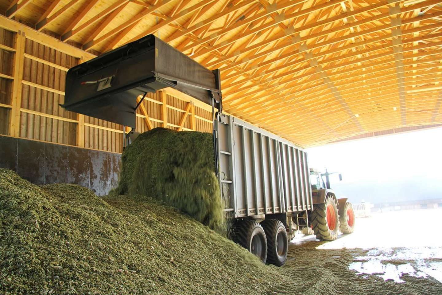 Vůz s výtlačným čelem je po celý rok připraven k práci. Nezáleží na tom, zda budete převážet například travní nebo kukuřičnou siláž, brambory, velké balíky, těžký materiál nebo sníh – jeho pružnost a síla posuvu nezná žádné meze. Díky snadné výměně lze z dopravního vozu udělat rozmetadlo. Stačí vyměnit výtlačné čelo za rozmetadlo PROFI V2n s rozmetacím talířem a rozmetací klapkou.