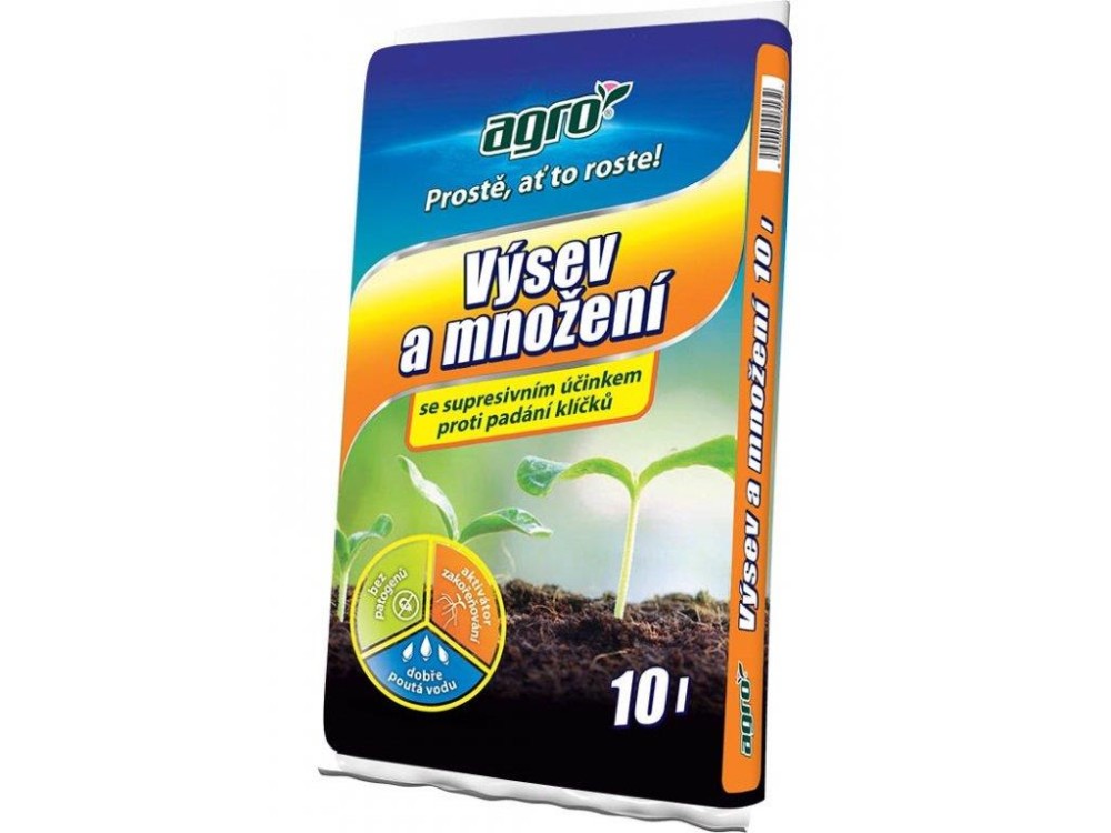 AGRO Substrát pro výsev a množení s aktivátorem zakořeňování zajišťuje výborné podmínky pro rovnoměrné vzcházení semen, zakořeňování řízků a dobrý růst mladých sazeniček. Substrát udržuje kyprost a vzdušnost výsevní plochy a má speciální jemnou strukturu podporující zdravý růst křehkých výhonků. Ideální pro předpěstování sadby květin, zeleniny a k vegetativnímu množení rostlin.