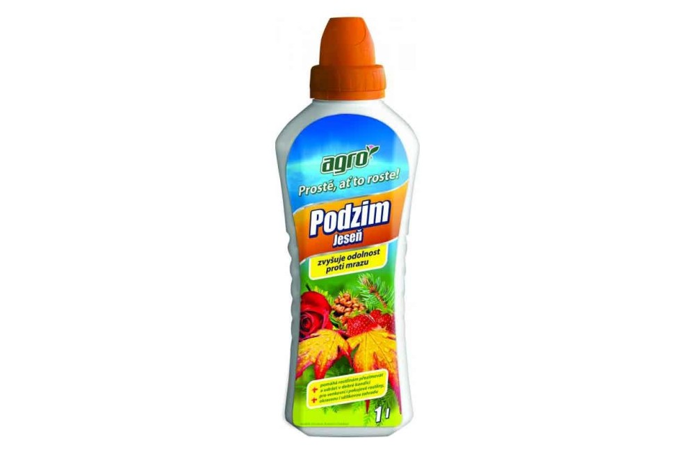 • Agro PODZIM je kapalné podzimní hnojivo, které svým nízkým obsahem dusíku a vysokým obsahem draslíku ukončí bujný růst rostlin a zajistí jim vyzrávání pletiv před zimou.