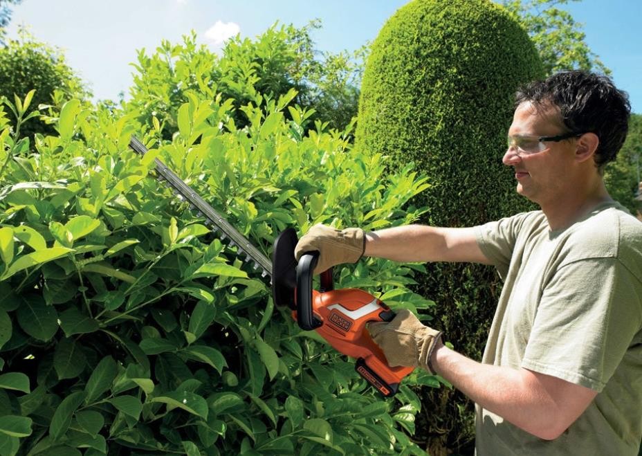 • Akumulátorové nůžky pro stříhání a tvarování živého plotu na zahradě