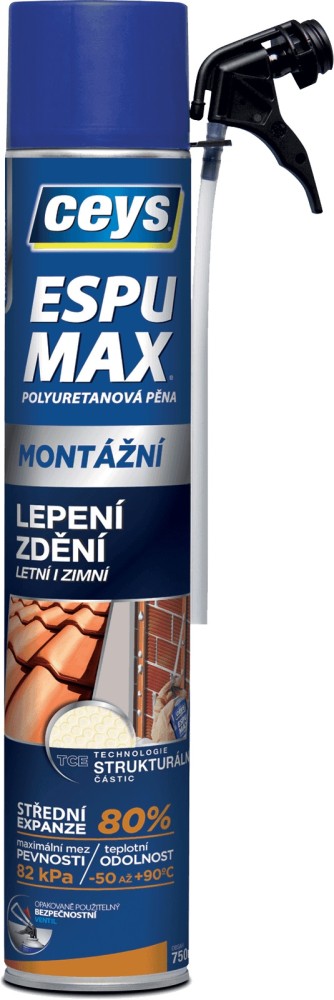 • Montážní pěna se střední expanzí (80 %) pro všeobecné lepení ve stavebnictví na různé druhy materiálů a vyvinutá i pro připevnění střešních tašek s maximální zárukou bezpečnosti. Je kompaktní a hutná, dokonale odolává teplotním změnám počasí. Pěna slouží pro montáž okenních rámů a dveří včetně bednění, střešní krytiny a dalších montážních prvků. Usnadní také upevnění jakéhokoliv materiálu použitého ve stavebnictví (cihla, cement, kov, dřevo apod.) a lepení polystyrenových panelů při zateplování budov, lehkých panelových bloků. S technologií strukturálních částic – přilnavé částice se střední rozpínavostí umožňují Montážní PU pěně vysokou přilnavost a odolnost na stavebních materiálech a zároveň poskytují kvalitní tepelnou a akustickou izolaci.