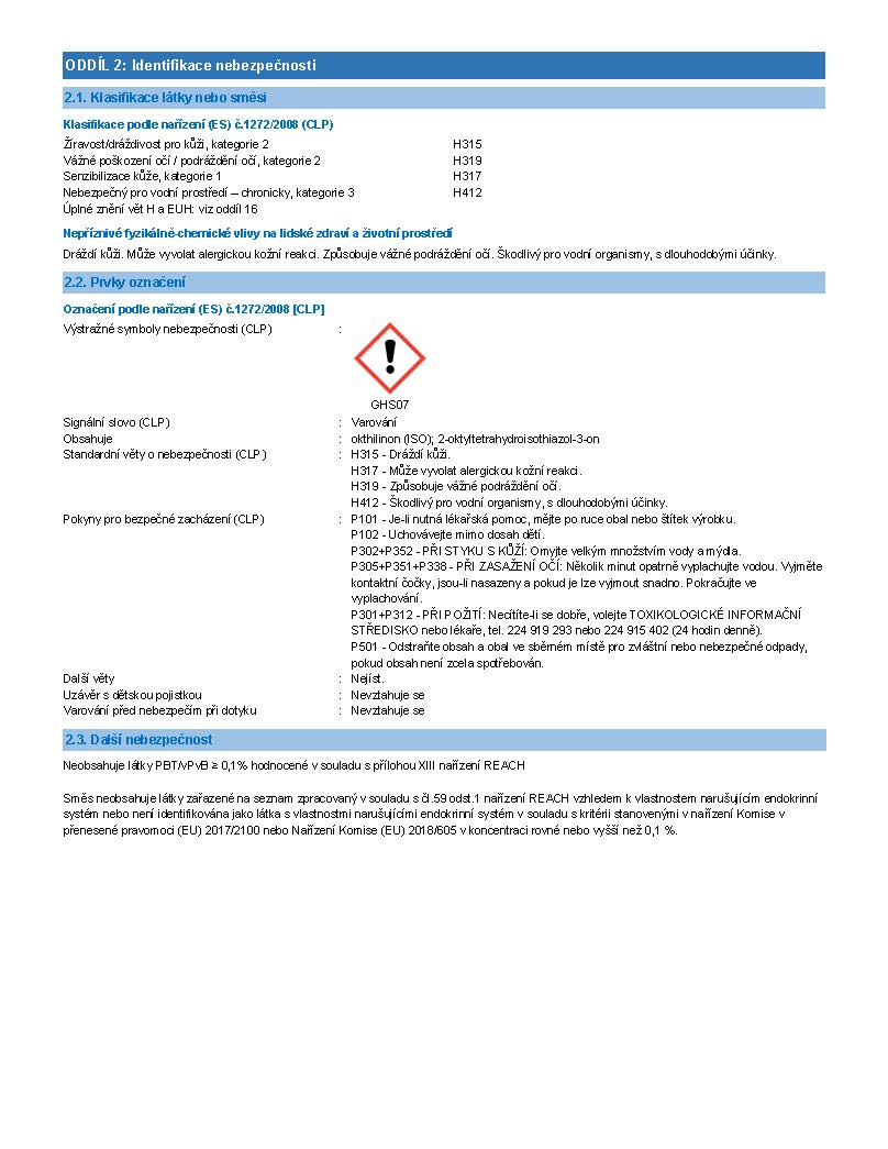 • Není určeno na mramor, zrcadla, polyethylen, polypropylen, PTFE, akvária, nepoužívat při kontaktu s potravinami.