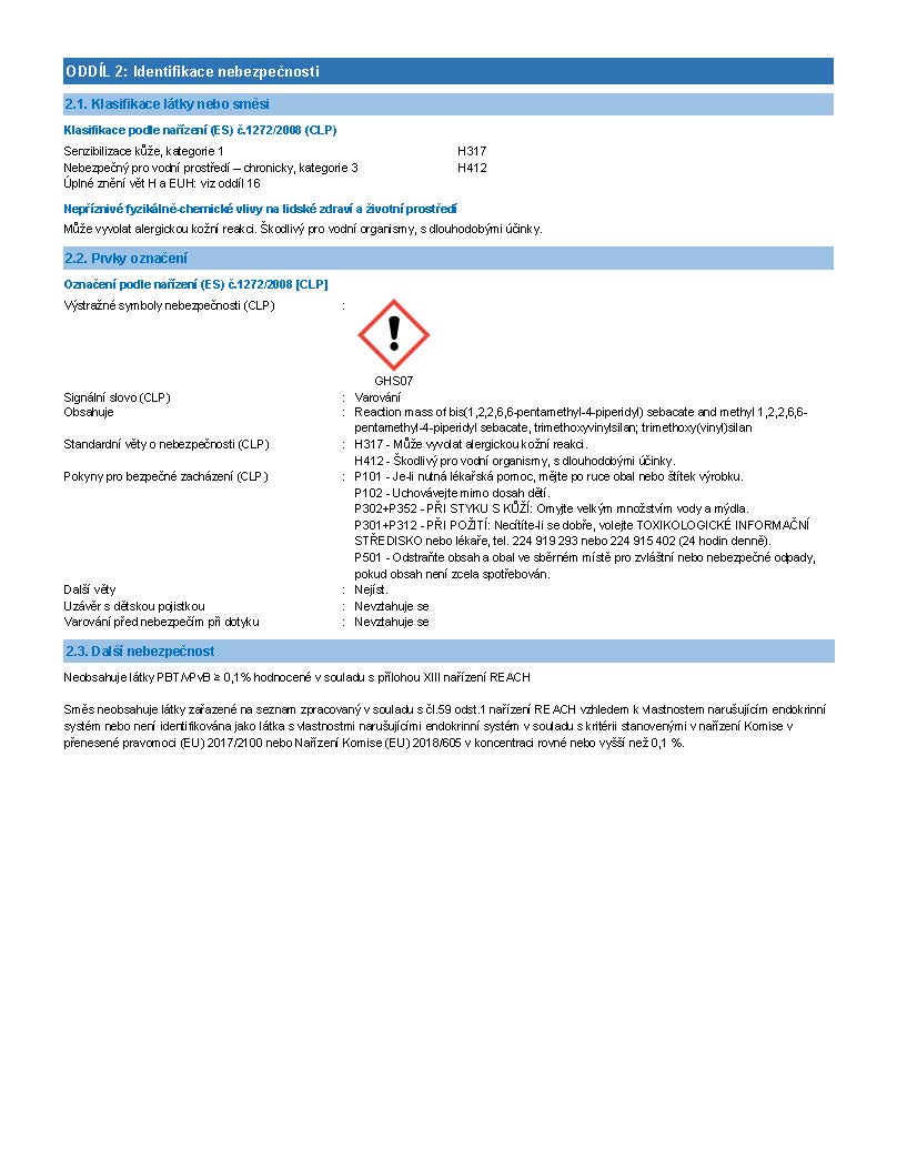 • Bez rozpouštědel. Nepoškozuje citlivé materiály.