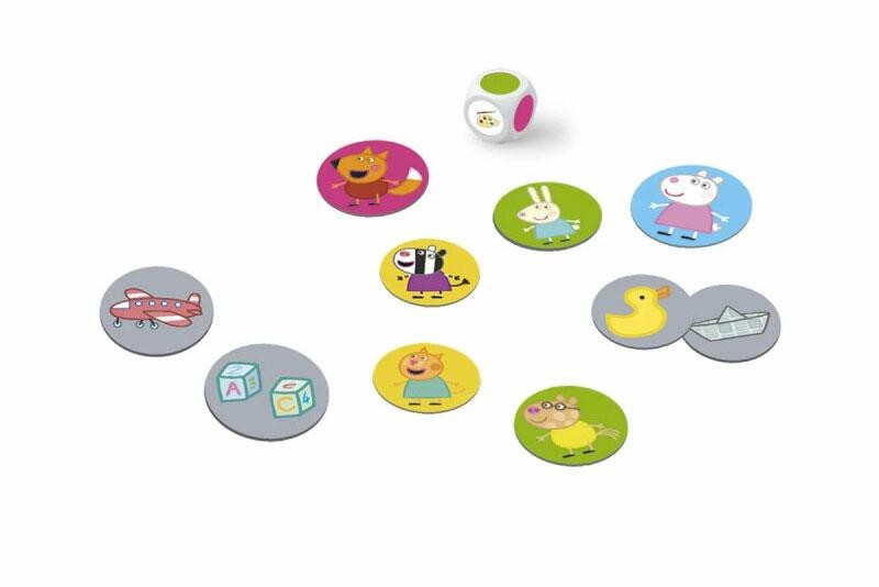 Balení obsahuje: 40 žetonů se zvířátky, 8 žetonů s hračkami, 4 herní plány hřiště, 1 herní plán s domečky, 1 barevnou kostku.