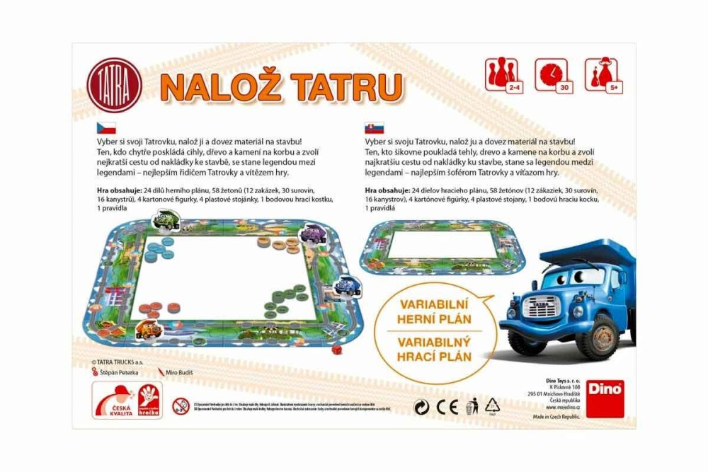 Stát se řidičem Tatry je jedním z nejčastějších dětských snů. Ale stát se tím nejlepším? To už je opravdová výzva, do které se navíc můžete zapojit i vy, dospěláci. Sestavte s dětmi herní plán, vyberte každý svou tatrovku a pusťte se do nakládání stavebních materiálů. Zvládnete to tak chytře, abyste převezli co nejvíc věcí v co nejkratším čase? Jedině ten nejefektivnější řidič totiž zvítězí. Za každou splněnou zakázku získáte určitý počet bodů a ty se ve finále sečtou. Při hraní si děti procvičí nejen počty, ale i strategické uvažování a kombinatorické schopnosti.