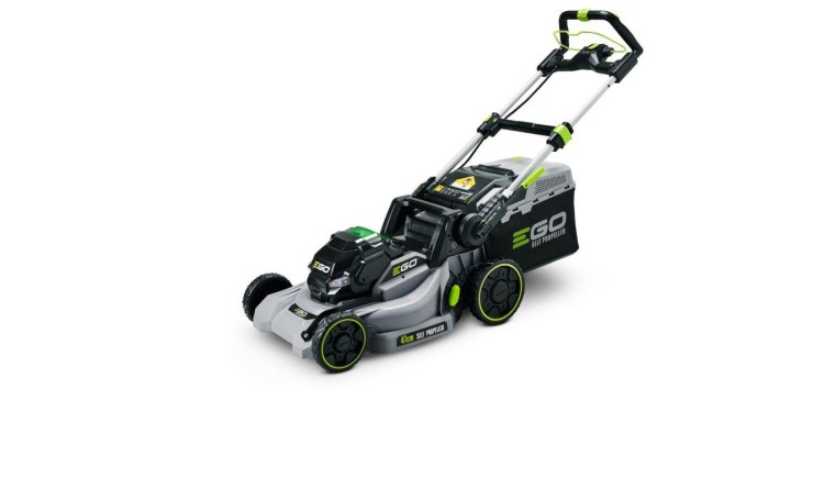 Model EGO LM 1903E-SP - záběr sečení 47cm a plynule proměnlivý pojezd, objem sběrného koše 55L, teleskopická a výškově nastavitelná komfortní rukojeť.