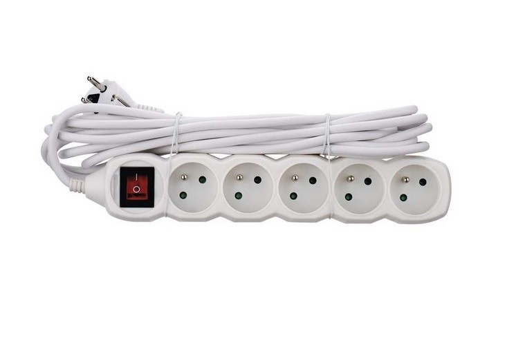 Prodlužovák 5 zásuvek 5 m+vyp~250 V/10 AProdlužovák 5 zásuvek 5 m+vyp~250 V/10 A