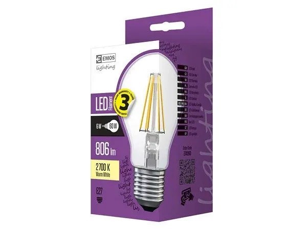 Emos Z74260 Žárovka LED Filament A60 6W E27 teplá bílá