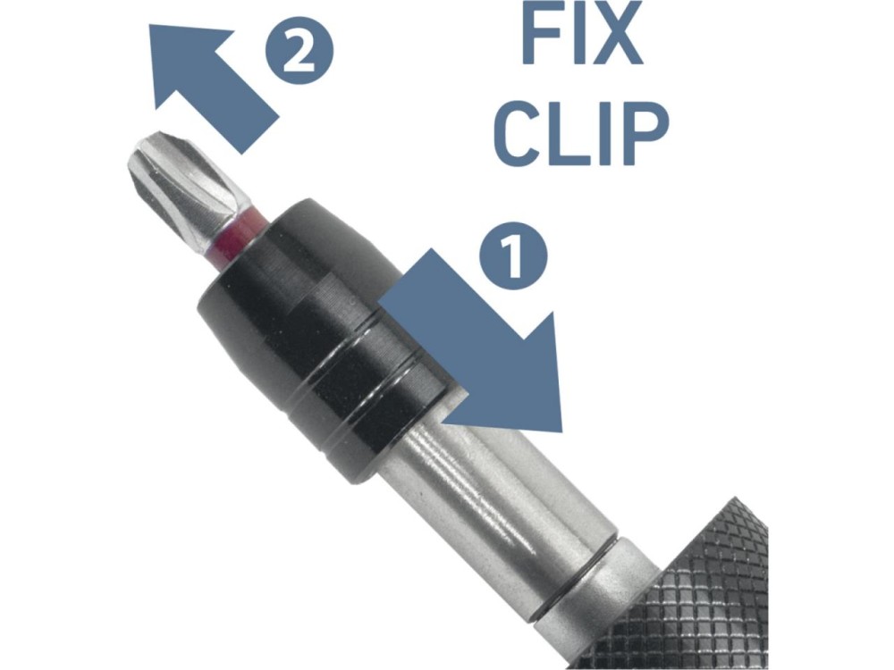 • Mechanismus funkce Fix-Clip pracuje tak, že hrot je po lehkém zatlačení do držáku pevně zafixován a pro jeho vyjmutí je třeba vnější prstenec nejprve zatlačit směrem k rukojeti a poté hrot vyjmout.