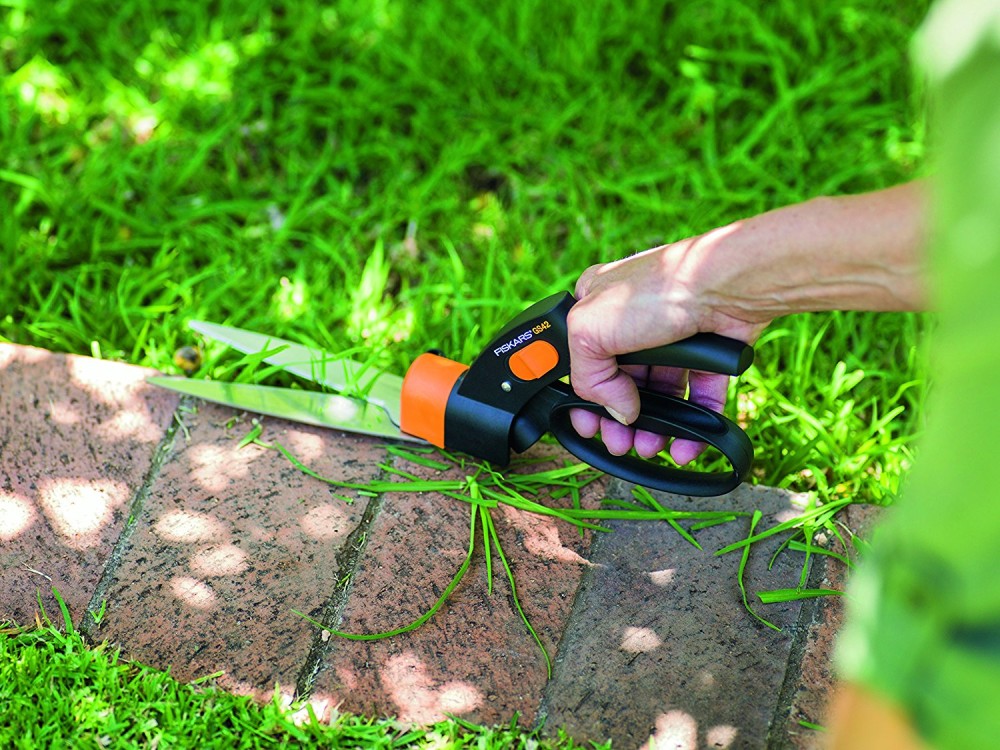 Nůžky na trávu Fiskars Servo GS42 mají technologii Servo-System™ zabraňující “žvýkání” trávy. Natočení čepelí je nastavitelné v rozsahu 360°. Držadla z kompozitního materiálu FiberComp™. FiberComp™ je pevný materiál, vyztužený skelnými vlákny. Je trvanlivý a lehký. Mechanismus pro zajištění nůžek v uzavřené poloze se ovládá placem ruky. Pohodlné při použití.