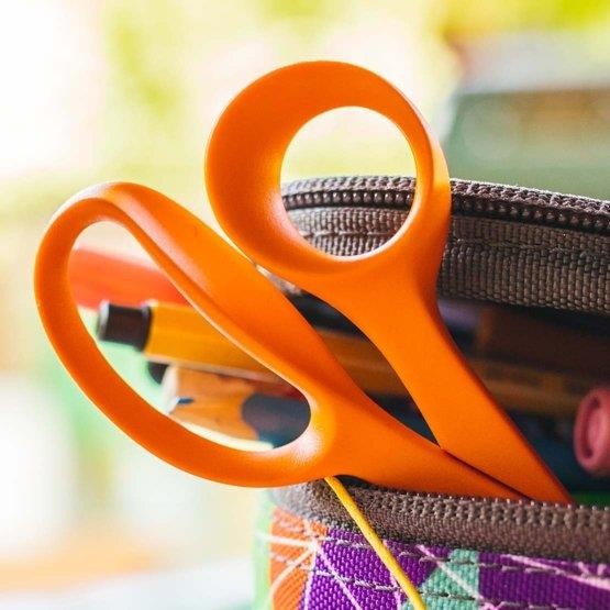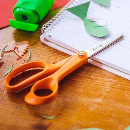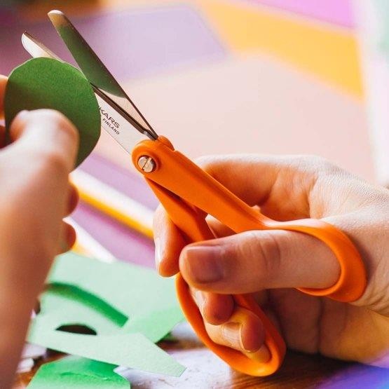 • Dětské nůžky Fiskars Classic pro praváky jsou stejné jako nůžky pro dospělé, jen mají bezpečné zaoblené hroty a správnou velikost pro malé ruce.