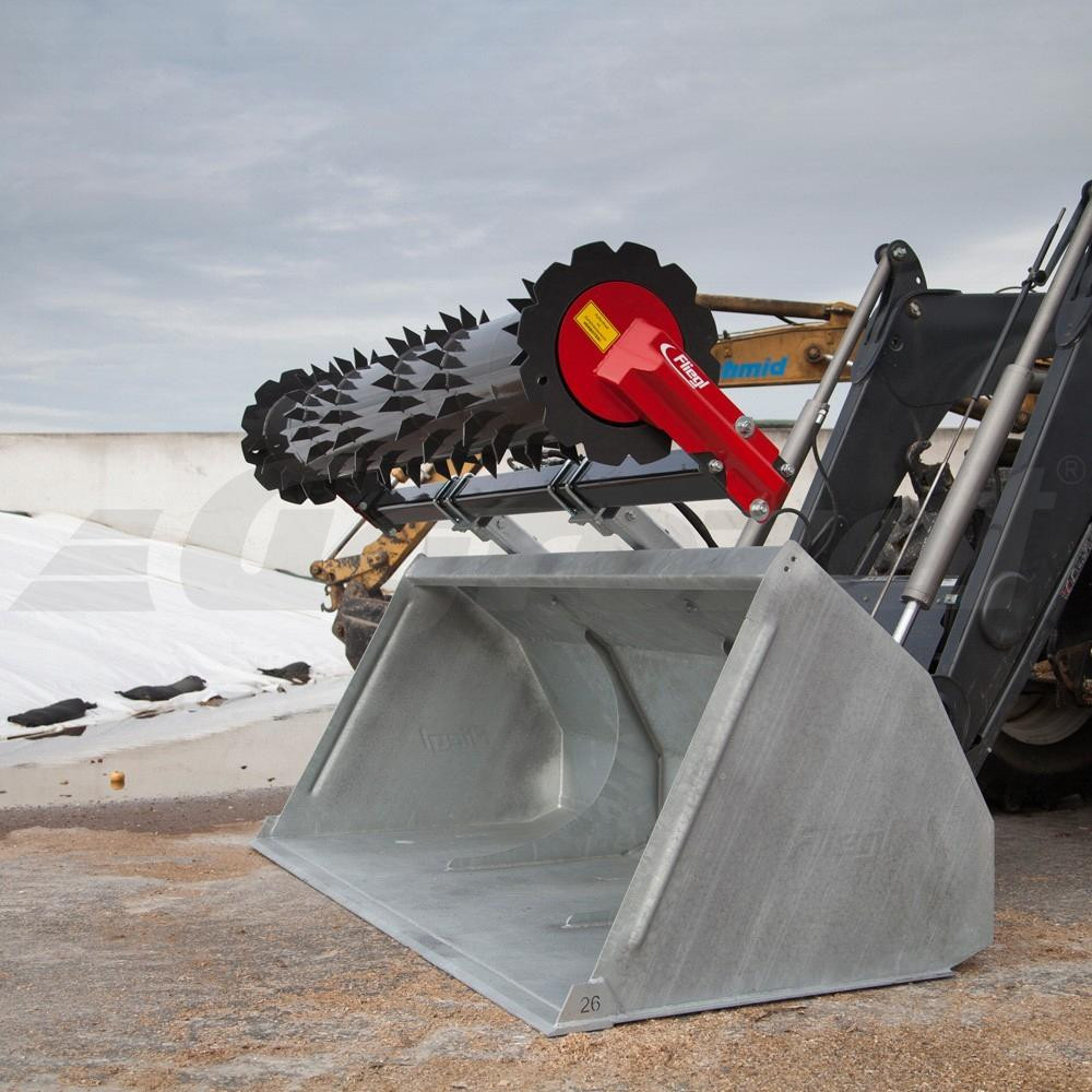 Možnost montáže na kteroukoliv lopatu čelního, kolového a teleskopického nakladače. Vybaveno 2 hydromotory. Frézování od 2,5 m3 do 3,5 m3 kukuřičné siláže za minutu. Ideální uspořádání nožů zajišťuje čisté a efektivní odebírání.