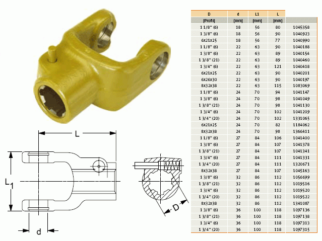 Informace o GKN Walterscheid 019516 / 1019516 / 35.10.02 Vidlice AG 2400, 1 3/8" Z=21