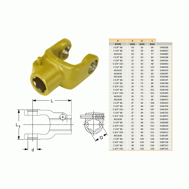 Informace o GKN Walterscheid 041049 / 1041049 / 20.10.00 Vidlice AG 2200, 1 3/8" Z=6