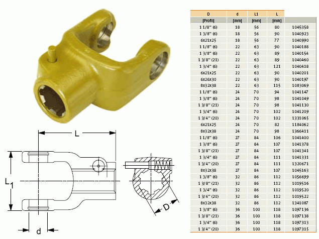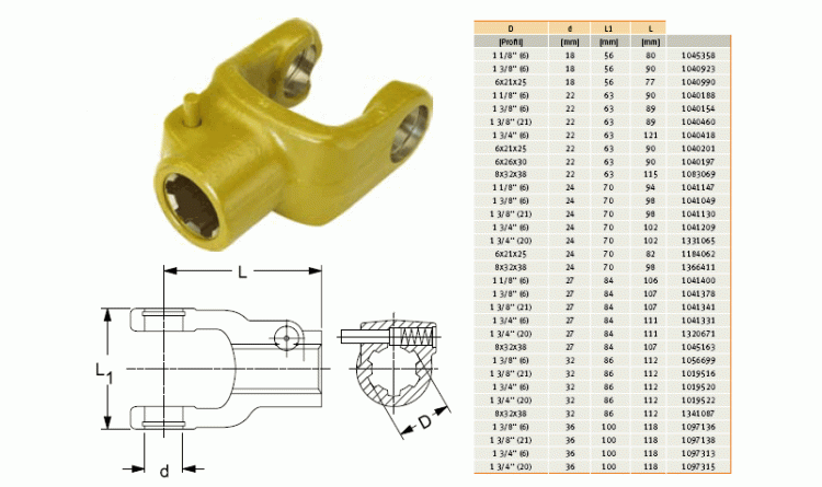 Informace o GKN Walterscheid 097138 / 1097138 / 36.10.02 Vidlice AG 2500, 1 3/8" Z=21
