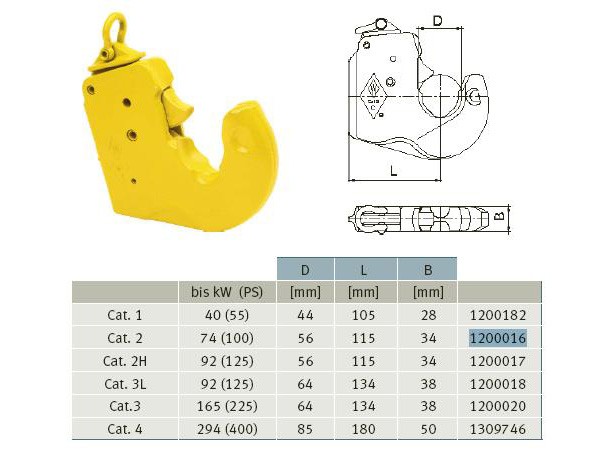 Informace o GKN Walterscheid 1200020 / 1208556 / 200020 Spodní hák kategorie 3 do 165 kW