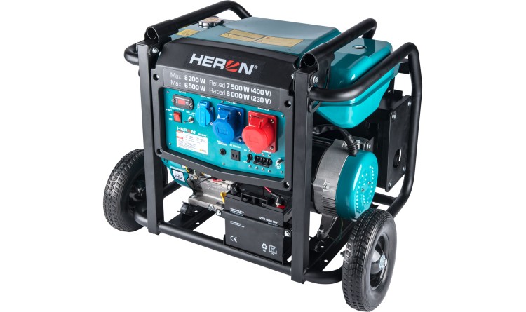 Elektrocentrála Heron benzínová 17HP/8,2kW/10,25kVA (400V), 6,5kW (230V), podvozek, elektrický start