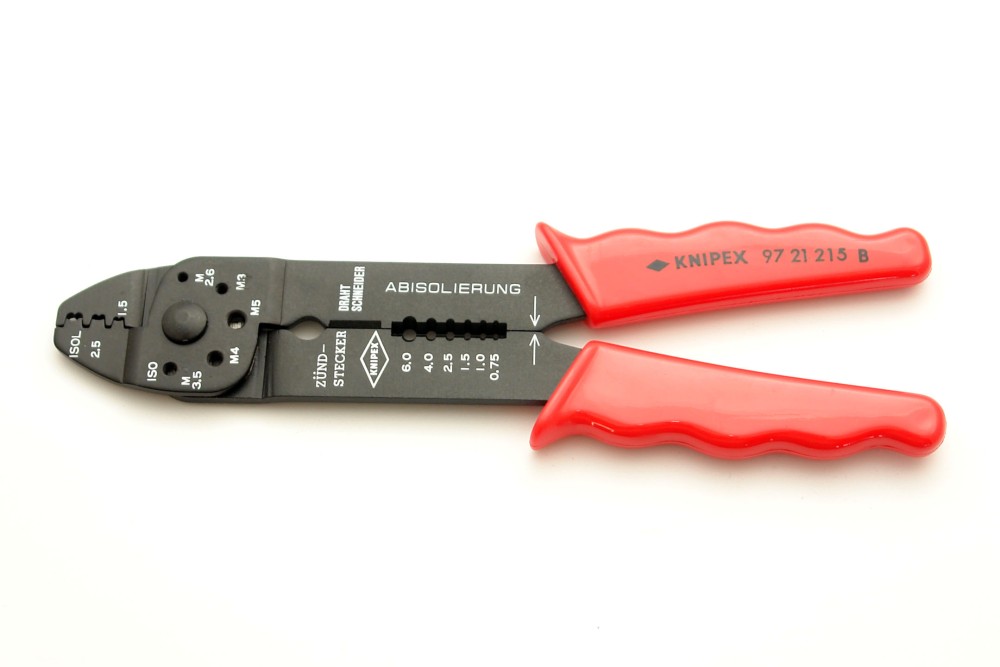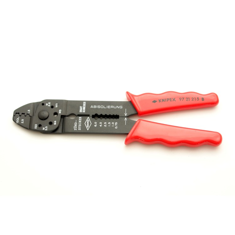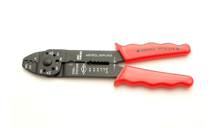 • K stříhaní kabelů, odizolování drátů a lisování izolovaných a neizolovaných kabelových ok a konektorů a otevřených konektorů