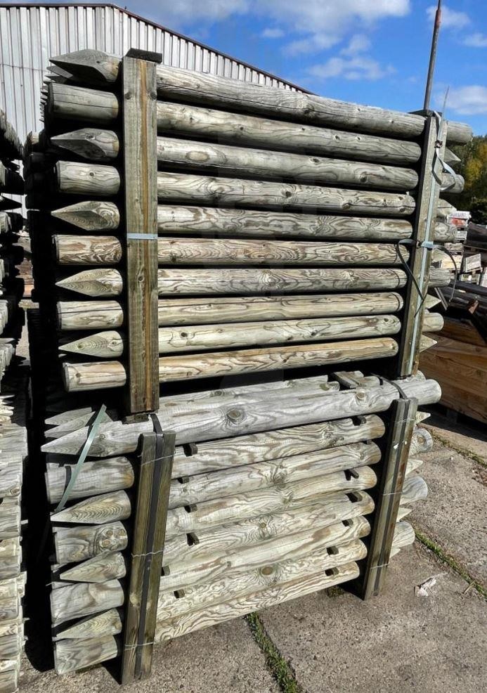 Dřevěná kulatina hladce ofrézovaná, na jednom konci upravená fazetou a na druhém špičkou pro snadné zaražení do země.