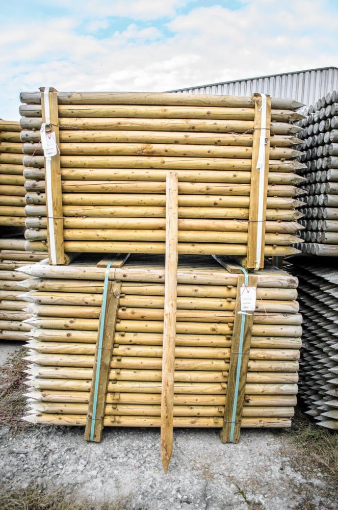 Dřevěná kulatina hladce ofrézovaná, na jednom konci upravená fazetou a na druhém špičkou pro snadné zaražení do země.