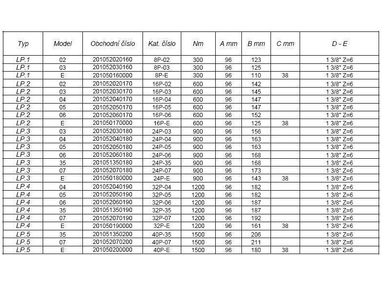 Spojka přetěžovací LP.2 600 Nm 1 3/8" Z=6