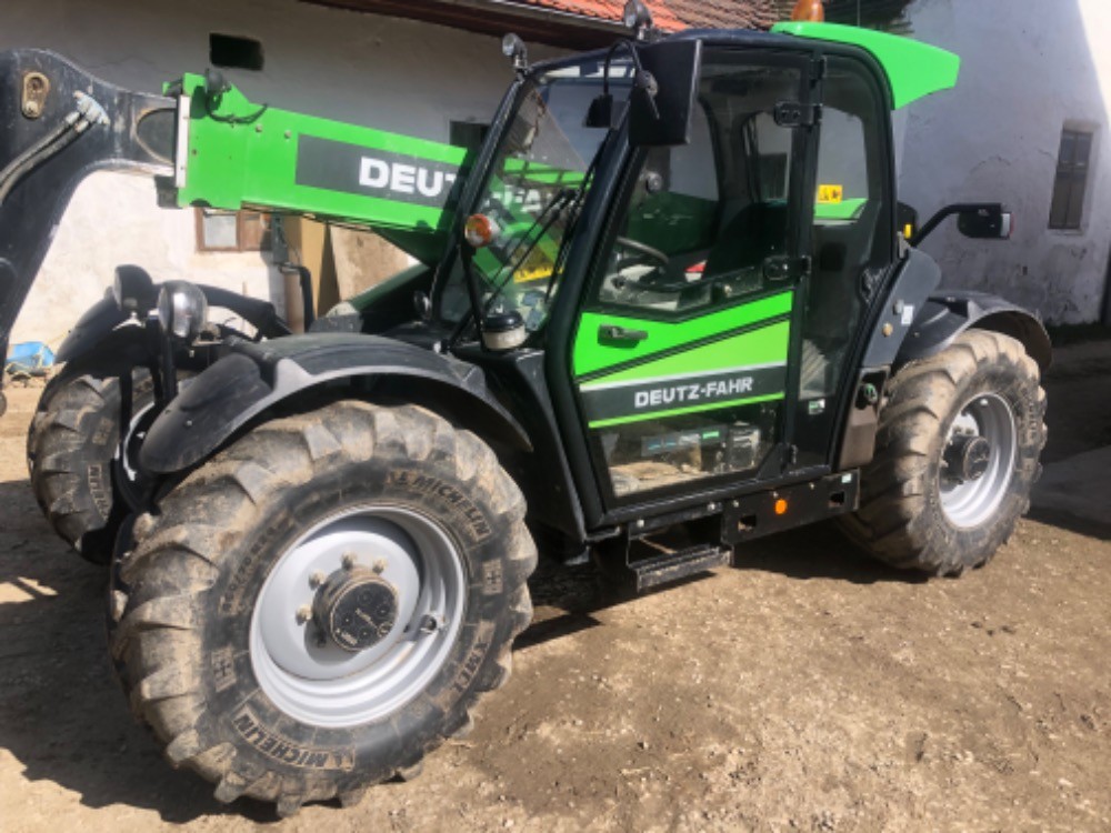 Výbava: Pojezdova rychlost- 40km, Převodovka - power schift (6stupnu v před a 3stupne vzad), paletove vidle, odpružení ramene, rychlospojky vzadu na sklopení vleku, zadní závaží a polohovací závěs