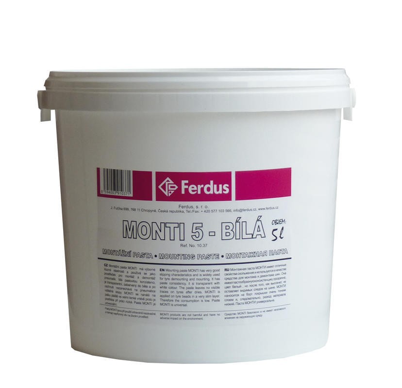 Montážní pasta MONTI má výborné kluzné vlastnosti a používá se jako prostředek pro montáž a demontáž pneumatik. Má pastovitou konzistenci, je transparentní, zabarvený do běla a po uschnutí nezanechává na pneumatice viditelné stopy. MONTI se nanáší na patku pláště ve velmi tenké vrstvě a proto je spotřeba při práci nízká. Pasta MONTI je univerzální, používá se při montáži a demontáži pneumatik jízdních kol, motocyklů a osobních a lehkých nákladních vozidel.