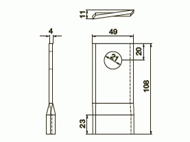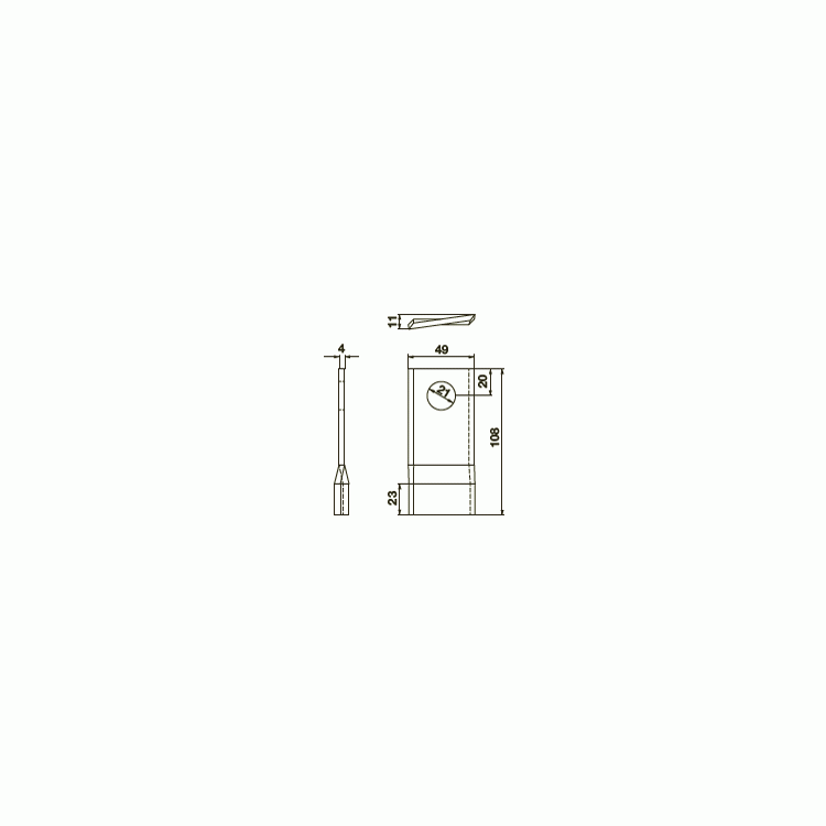 Nůž pravý 108x49x4mm díra 21
