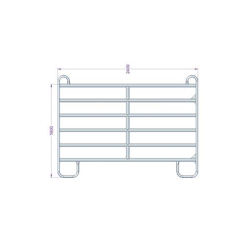 Výška od země 160 cm, 170 cm včetně horních oblouků, fixační řetízek 2 x na jedné straně, plochá trubka 50 x 30 x 1,5 mm, rozteč příček 20 cm, kompletně žárově pozinkovaný.