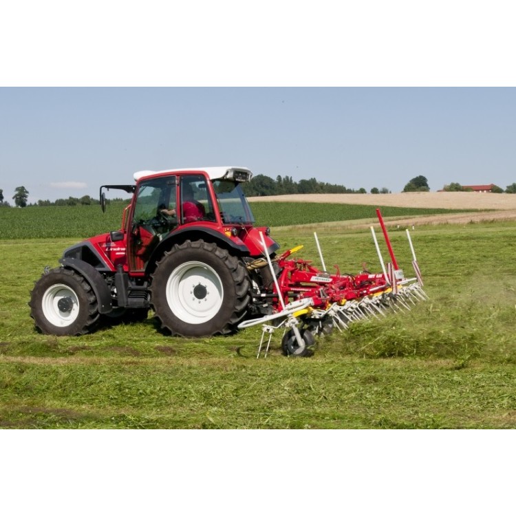 Standardní výbava zahrnuje hydraulické sklápění do přepravní polohy, mechanické tlumicí vzpěry, výstražné tabulky s LED osvětlením a volitelné hydraulické krajové obracení s ovládáním přímo z kabiny traktoru.