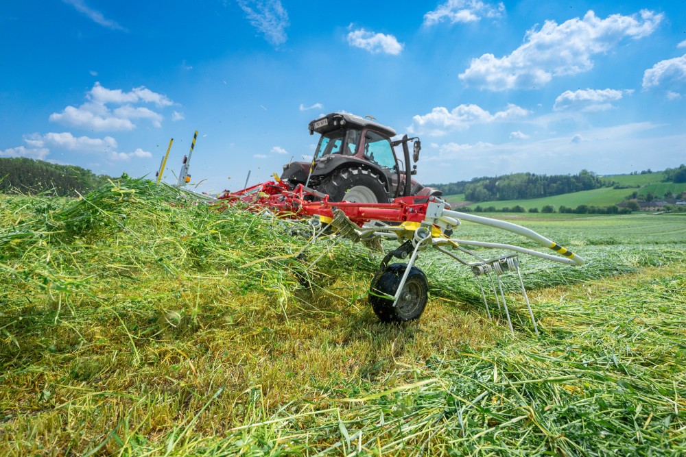 Standardní provoz probíhá při 1000 ot./min, ale při sklizni suché píce lze snížit otáčky na 540 ot./min, což umožňuje jemnější práci a např. tvorbu nočních řádků. To přináší vyšší flexibilitu nasazení v různých sklizňových podmínkách.