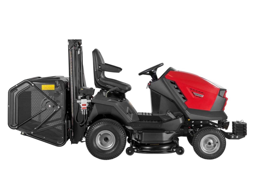 Hlavní výhodou je vysokozdvižný koš s možností dálkového vyklápění, který zajišťuje snadné a rychlé vyprazdňování přímo na zem nebo do kontejneru. Díky tomu je Starjet P5 PRO ideálním řešením pro údržbu rozsáhlých obecních ploch bez nutnosti ruční manipulace s posečenou trávou, což významně zvyšuje efektivitu práce a šetří čas a zajišťuje plynulý pracovní proces. Tento model je vybaven dvourotorovým sečením umístěným mezi nápravami, které zaručuje precizní sečení i v náročných podmínkách.