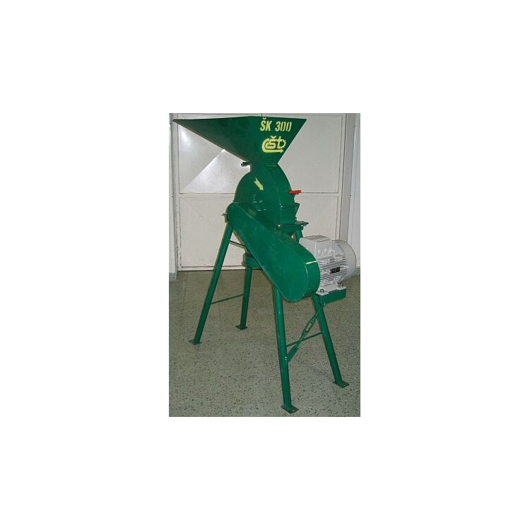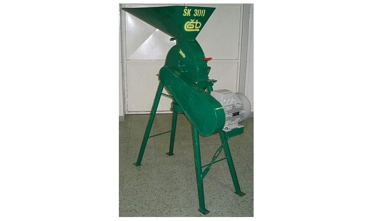 Šrotovník ŠK 300 je určený na šrotování všech druhů zrnin, chleba, celých klasů kukuřice. Je vyrobený ze zesilněného materiálu. K šrotovníku sou dvě síta na jemnější a hrubší šrot. Převod klínových řemenů je chráněný krytem.)