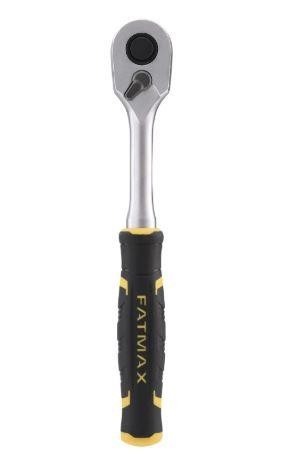 Ráčna s bimateriální rukojetí 3/8" Stanley FMMT82677-0 vybavená ráčnovým mechanismem s dvojitou západkou a 120 zuby.
