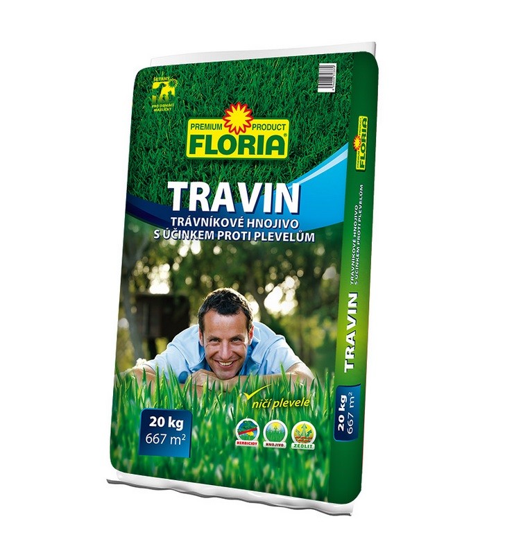 • Travin, hnojivo s přídavkem selektivních herbicidů a zeolitu, je ve vodě nerozpustné a tedy vydrží aktivně působit v trávníku po dobu 2 měsíců.