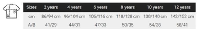 | Délka rukávů v cm | 13 | 14 | 15 | 16,5 |