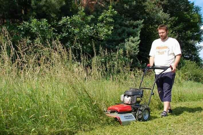 Vyžínač křovin Hurricane Max s dvěma rychlostmi pojezdu a šíří záběru 58 cm si perfektně poradí s vysokou trávou, bez problému ji rozdrtí a zanechá minimální travní zbytek, a to díky patentovanému tvaru žacího prostoru v kombinaci s odolným značkovým mulčovacím nožem zn. GATOR. Dalším chráněným prvkem je vysoce funkční vodicí ostruha, která perfektně vede stroj i v tom nejnáročnějším terénu. Zároveň umožnuje výškové nastavení žacího prostoru od 4 do 9 cm v 16 polohách.