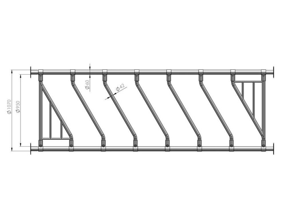 • Diagonální žlabová zábrana je určena k vymezení krmného prostoru pro skot.